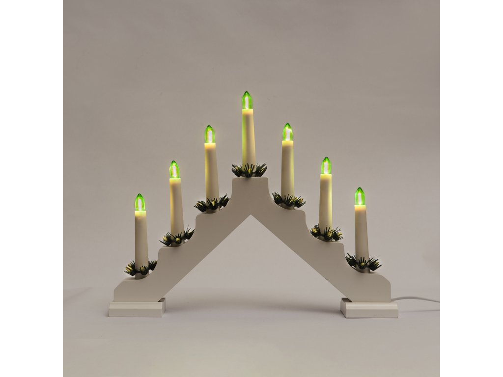 Adventní svícen dřevěný bílý, 7x34V/0,2W LED Filament zelený