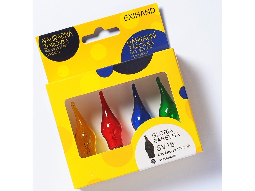 Tradiční skleněná žárovka ruční výroby 1 blistr = 4 žárovky, mix všech barev (modrá, červená, zelená, žlutá)