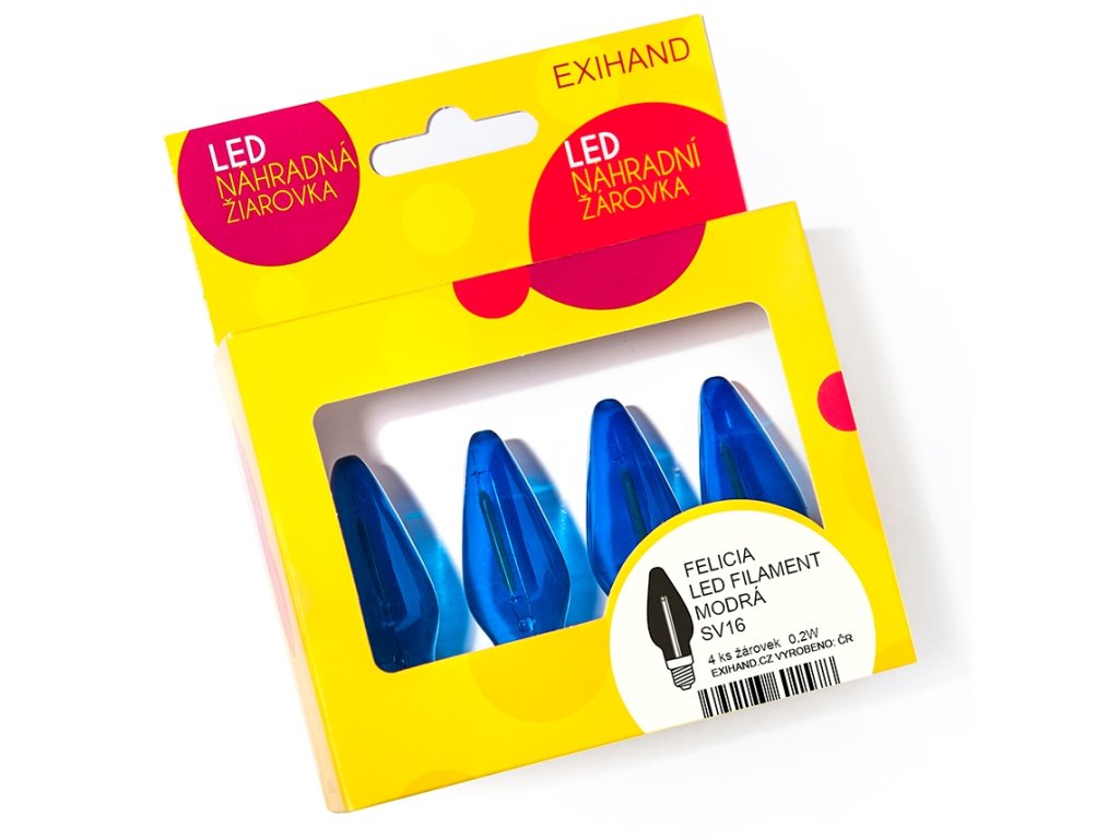 Schachtel mit 4 blauen Felicia Glühbirnen LED Filament 14V/0.2W
