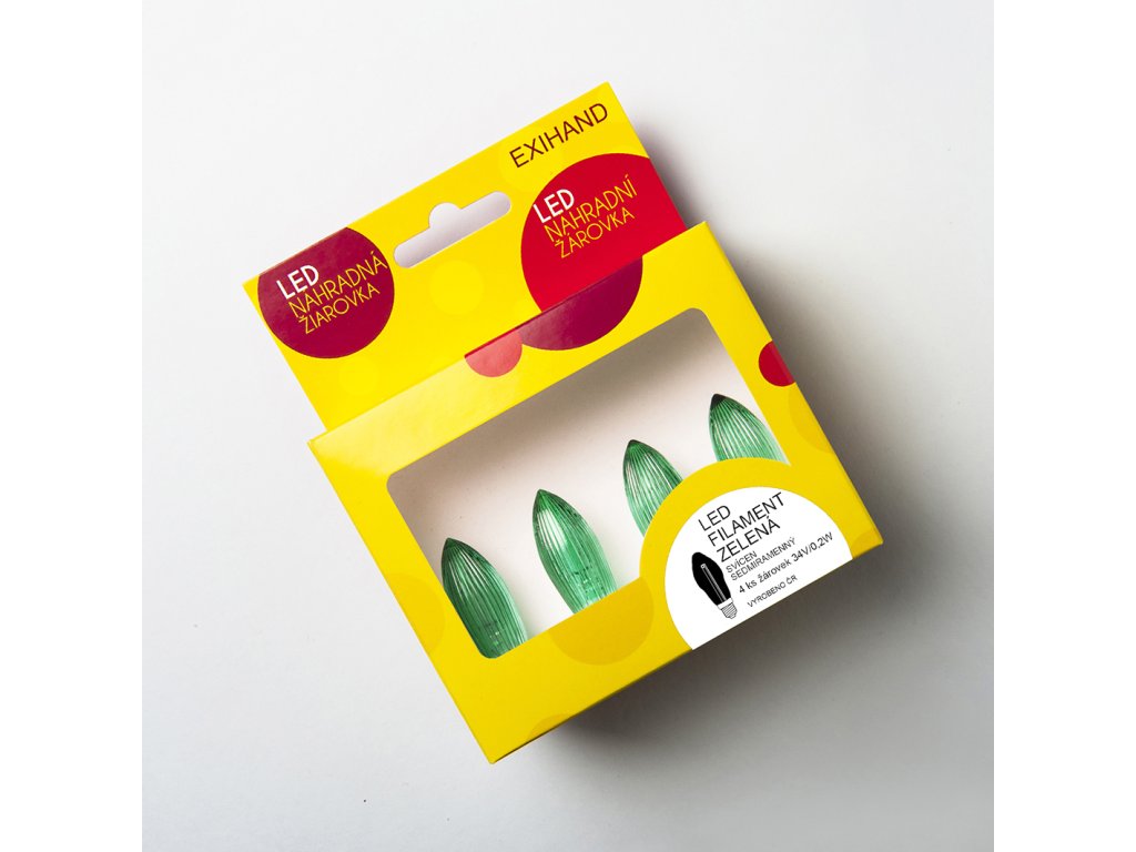 Schachtel mit 4 GRÜNEN LED-Birnen FILAMENT für Kerzenhalter 34V/0,2W