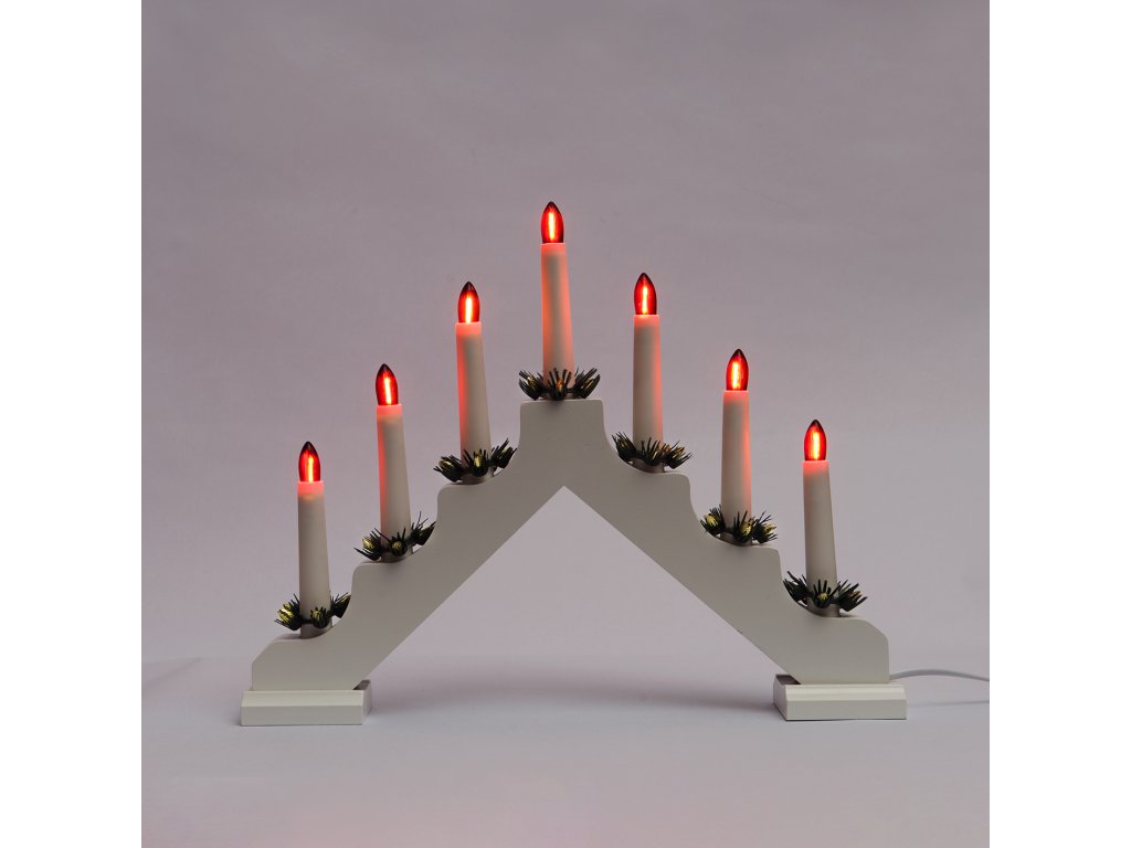 Adventní svícen 2262-210 dřevěný bílý, 7x34V/0,2W LED Filament červený