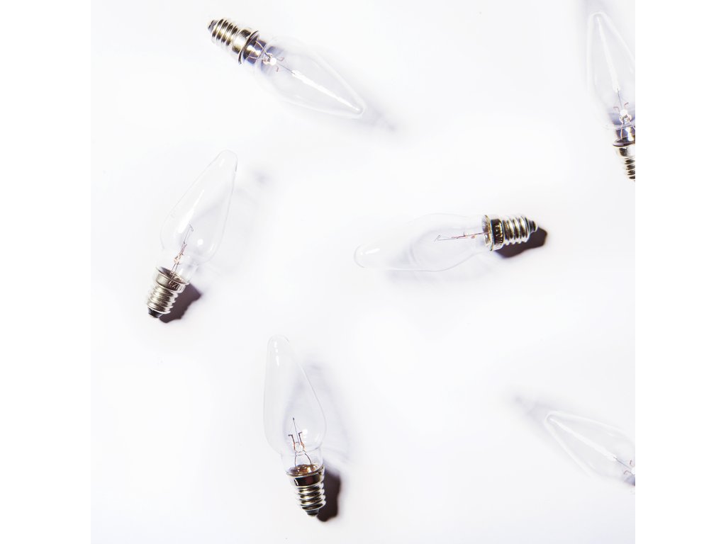 Traditional handmade glass bulb. Package contains 64 bulbs with clear bulb. Smaller quantities of bulbs can be purchased in box of 4.