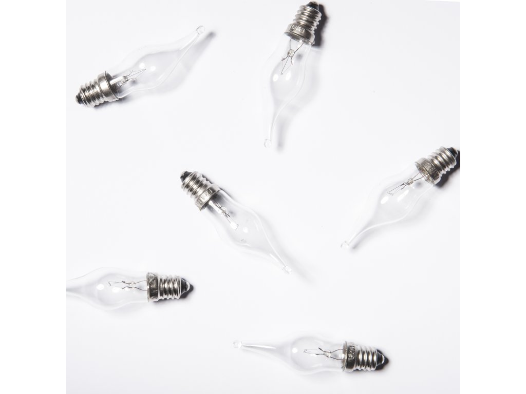 Traditional handmade glass bulb. Package contains 64 bulbs with clear bulb. Smaller quantities of bulbs can be purchased in box of 4.