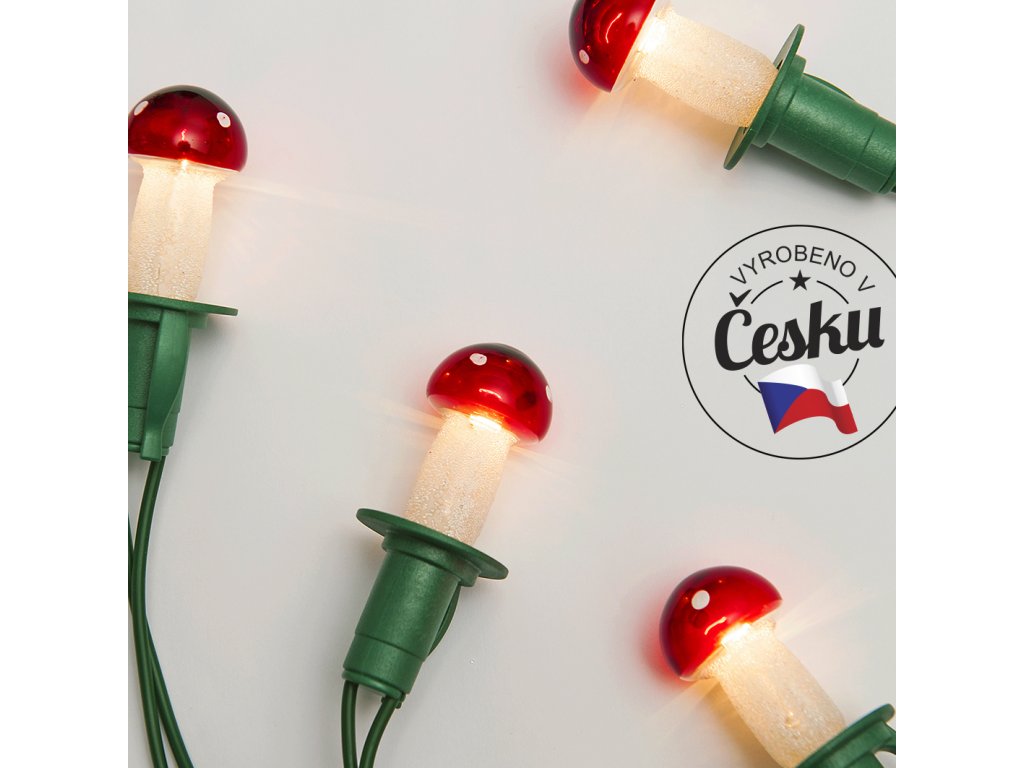 Tradiční osvětlovací souprava se skleněnými žárovkami tvaru MOCHOMŮRKA. Nejprodávanější typ osvětlovací soupravy/řetězu.!!!
