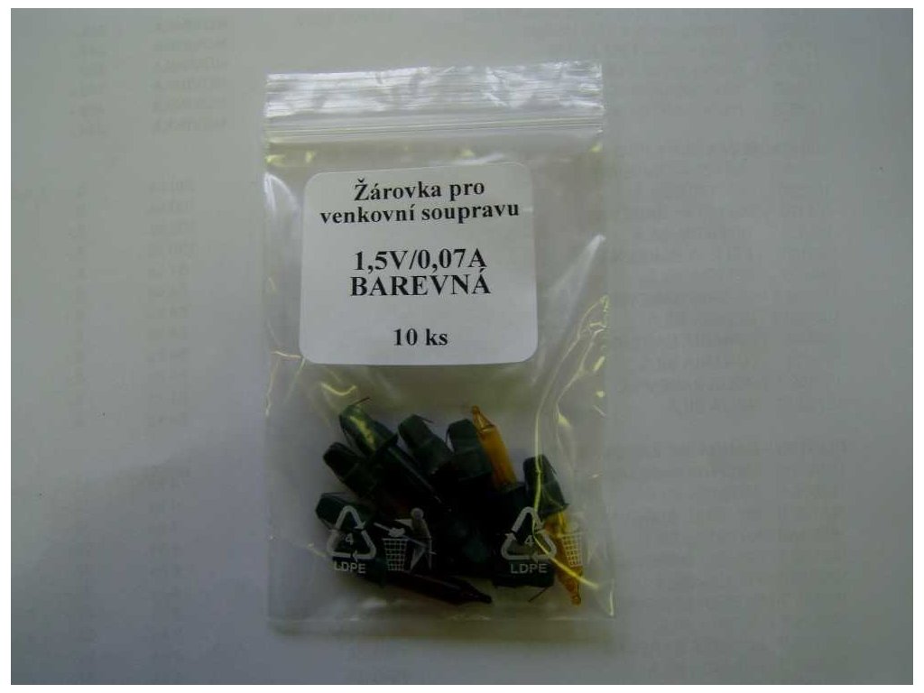 Žárovka barevná pro venkovní řetězy SVV, 1,5V/0,07A, sáček 10 ks